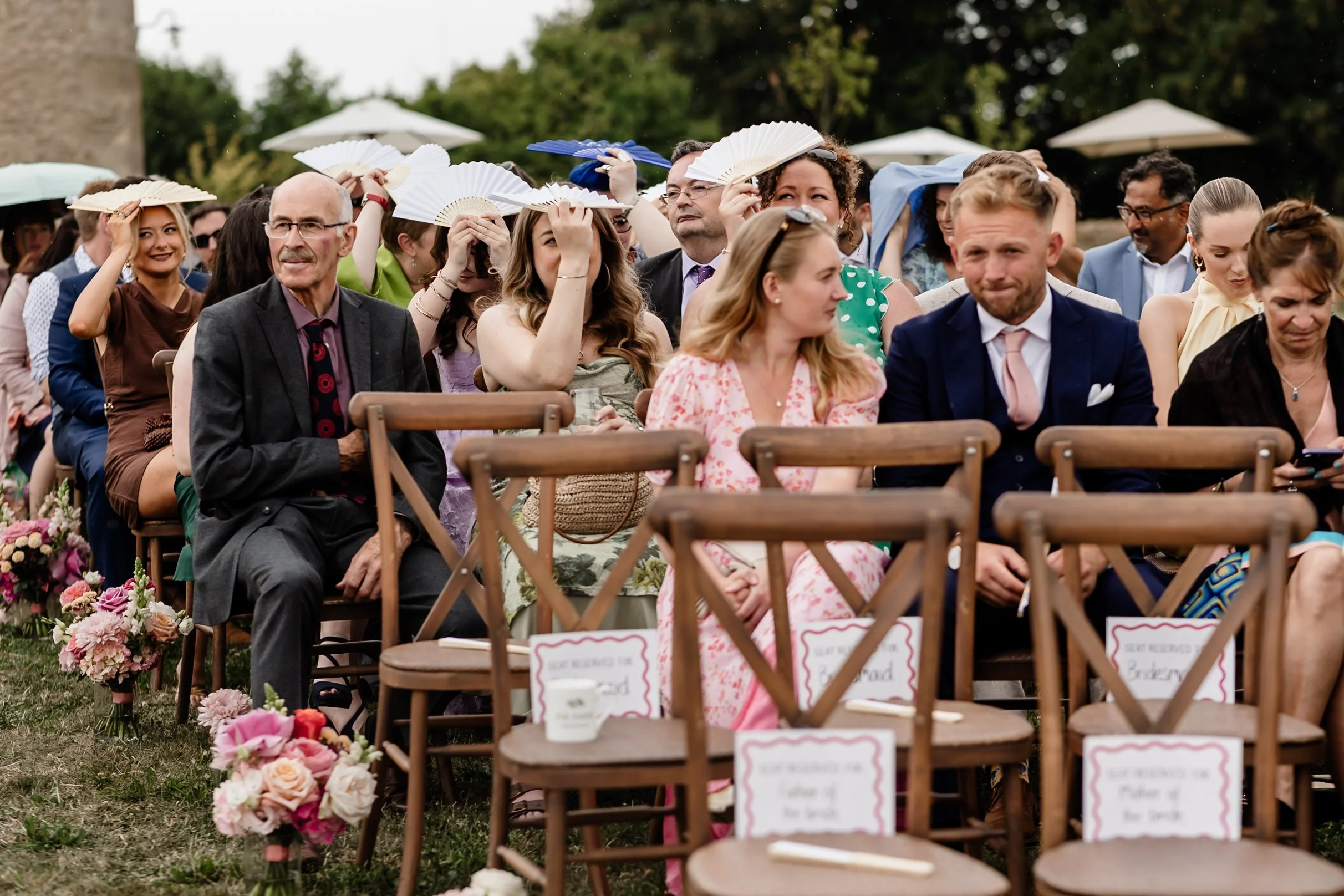 When a few rogue raindrops made an appearance, guests simply lifted their fans overhead and carried on like it was part of the plan. No dramatic rush indoors. No stress. Just laughter, a bit of British grit, and the kind of atmosphere you can’t manufacture.