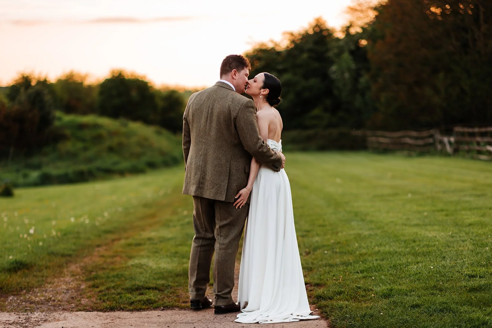 As the sun began to set, we dashed outside for five quick minutes to grab some gorgeous photos in the last of the light before heading back in for the dancing. This first dance was extra special, lifts, spins, laughter, and everyone joining in. Once the band finished, we had a sparkler send-off and a champagne spray. I left this wedding drenched, but oh my, it was worth it just to see the excitement on everyone’s faces!